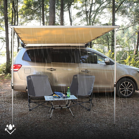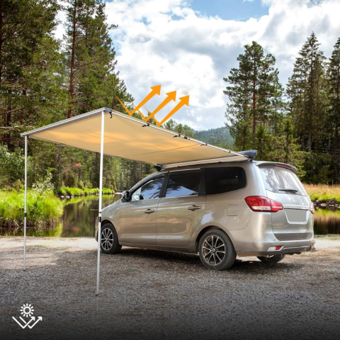 Tämä sivuvarjo kiinnitetään helposti autosi kylkeen luoden varjostetun ja suojatun tilan vain muutamassa minuutissa. Ihanteellinen retkeilyyn, piknikkeihin, kalastukseen tai taukoihin matkalla, se tarjoaa tehokasta suojaa auringolta, sateelta ja tuulelta. Kompakti ja käytännöllinen, se seuraa kaikkia ulkoilma-seikkailujasi.
