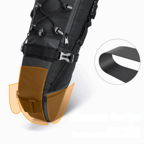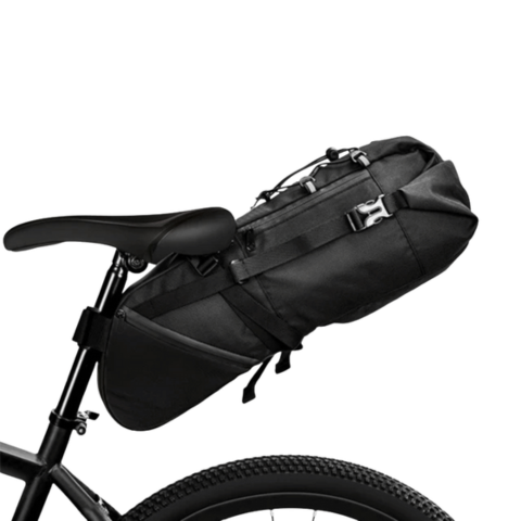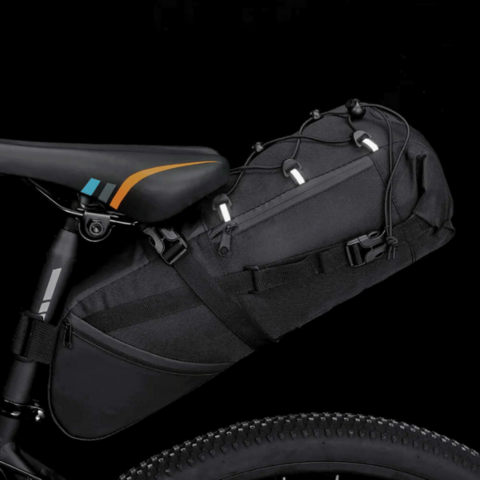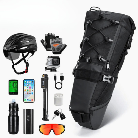 Tämä polkupyörän satulalaukku tarjoaa suuren 10 L kapasiteetin, täydellinen päivittäisten matkojen tai pitkiä vaelluksia varten. Vedenpitävä ja kestävä, se suojaa tavaroitasi sateelta ja roiskeilta, pysyen samalla vakaana vahvan kiinnitysjärjestelmänsä ansiosta. Heijastin nauhat lisäävät näkyvyyttäsi yöllä, varmistaen turvallisempia ja mukavampia matkoja.