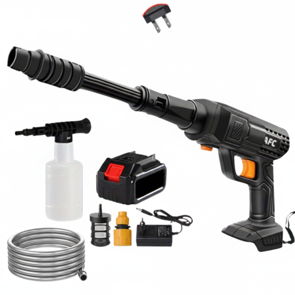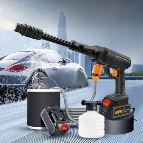 Ten pistolet do czyszczenia pod wysokim ciśnieniem oferuje skuteczną moc w kompaktowej i lekkiej formie. Bezprzewodowy i łatwy w obsłudze, pozwala na szybkie czyszczenie samochodów, tarasów, rowerów i wielu innych rzeczy. Zaprojektowany, aby być praktycznym i wytrzymałym, staje się twoim niezbędnym sojusznikiem w bezwysiłkowej konserwacji.