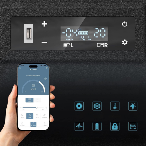 Denna bilkyl erbjuder snabb och effektiv kylning för dina resor och utomhusaktiviteter. Tack vare sin dubbla oberoende zon kan den kyla och frysa samtidigt efter dina behov. Kompakt, tyst och lätt att transportera, den blir den perfekta följeslagaren för camping, resor och vardagsliv.